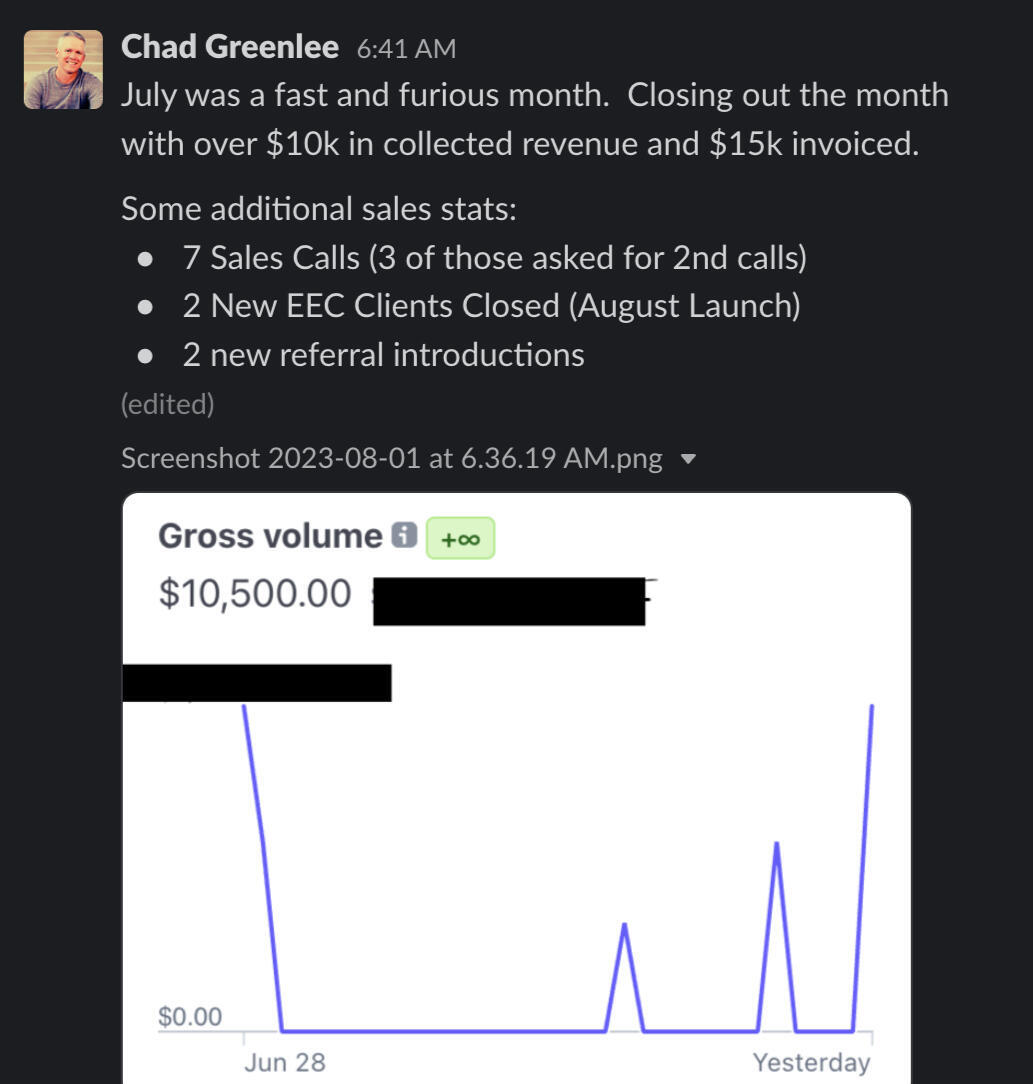 Then, a week later… HE SOLD ANOTHER!$10k in revenue before he’d even gotten 50% through the program.That’s the power of a differentiated offer!